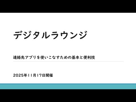 デジタルラウンジアーカイブ 連絡先アプリを使いこなすための基本と便利技2025年11月17日開催